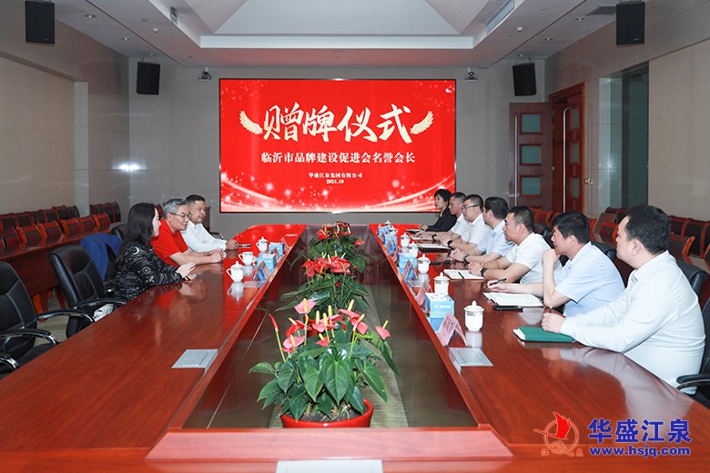 10月16日,臨沂市品牌建設(shè)促進(jìn)會(huì)在集團(tuán)舉行名譽(yù)會(huì)長(zhǎng)單位贈(zèng)牌儀式并進(jìn)行座談交流。臨沂市政府原副市長(zhǎng)劉賢軍,臨沂市品牌建設(shè)促進(jìn)會(huì)會(huì)長(zhǎng)胡守利、秘書長(zhǎng)劉亦珈,華盛江泉集團(tuán)黨委書記、總經(jīng)理高洪路,集團(tuán)高管張毅、孟濤、付冬明、林洪標(biāo),以及華盛江泉城大酒店、臨沂江泉肉制品有限公司負(fù)責(zé)人出席儀式。