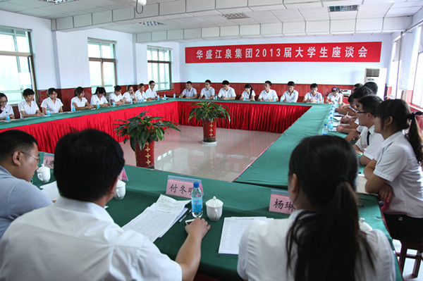 會上,首先由華盛江泉集團人力資源部主任李新勝對大學生的主要工作情況進行了簡要介紹。隨后參會大學生圍繞自身成長經歷,結合當前基層工作情況展開熱烈討論,積極建言獻策,分別從大學生檔案的管理、企業(yè)文化等方面進行了交流探討,并提出了發(fā)展建議。各位領導針對員工在工作中的疑問和建議逐一進行了解答。座談氣氛熱情洋溢、和諧融洽,充分展現了公司高層領導傾聽基層心聲、注重人文關懷的管理理念和員工求真務實、敬業(yè)愛崗的精神風貌。