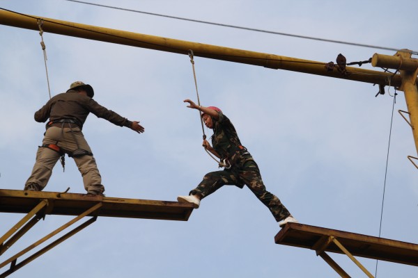 在拓展訓(xùn)練的過程中,大學(xué)生們精神飽滿、積極參與,充分展現(xiàn)了江泉人的風(fēng)采。伴隨著緊張的集合哨聲,訓(xùn)練課程正式開始,大學(xué)生們穿著整齊統(tǒng)一的訓(xùn)練服,步伐整齊,喊著響亮的口號,將青春的色彩點綴了整個訓(xùn)練基地。天氣炎熱,但大學(xué)生的激情不減,烈日下進(jìn)行著緊張的訓(xùn)練,課程緊湊、要求嚴(yán)格,每天的訓(xùn)練都在整齊洪亮的餐訓(xùn)聲中結(jié)束,“軍井未掘,將不言渴;軍灶未開,將不言餓;雨不披蓑,雪不穿裘;將士冷暖,永記我心!”