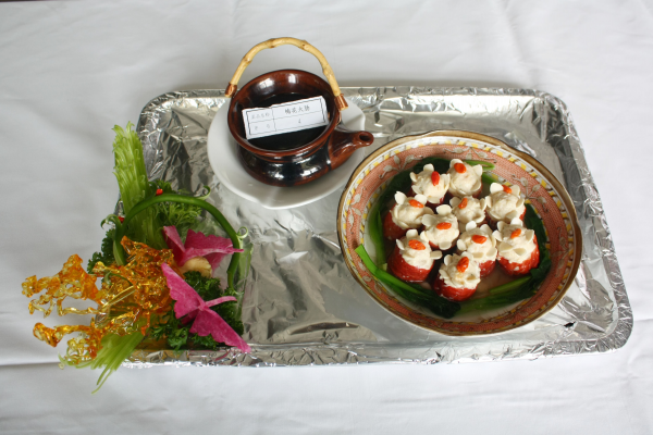 經(jīng)過層層選拔的10名廚師參加了此次比賽。本次比賽要求選手在90分鐘內(nèi)制作完成2道拿手菜品,菜品要有創(chuàng)意,符合健康飲食、營養(yǎng)搭配的要求。在比賽中,參賽選手們忙而不亂,大家都拿出了看家本領,可謂“八仙過海,各顯神通”,廚師們用鍋碗瓢盆奏起比賽的交響樂章。不一會,“千絲萬縷蝦”、“吮指回味蝦”、“梅花大腸”、“珍珠魚欖”、“秋意正濃”等一道道精美的佳肴仿佛一件件藝術(shù)品擺到了菜品展示臺上,頗見功底的各色菜肴堪稱美輪美奐,一道道美味令人垂涎欲滴。