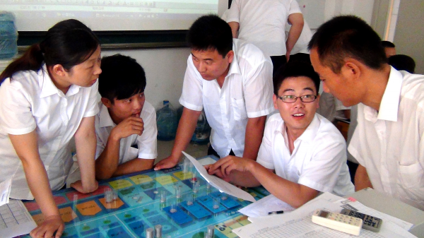 沙盤模擬課程在國(guó)外被統(tǒng)稱為simulation課程。由于是仿真實(shí)商業(yè)環(huán)境而開發(fā),具有很強(qiáng)的實(shí)戰(zhàn)性,所以被譯作“沙盤模擬”、“模擬經(jīng)營(yíng)”、“商業(yè)模擬”等。本次集訓(xùn)首次采用用友ERP沙盤模擬,每組隊(duì)員要分為CEO、財(cái)務(wù)、物流、生產(chǎn)、營(yíng)銷等不同的崗位,由不同的崗位成員配合共同完成企業(yè)的經(jīng)營(yíng),并且六個(gè)小組之間展開競(jìng)爭(zhēng)。